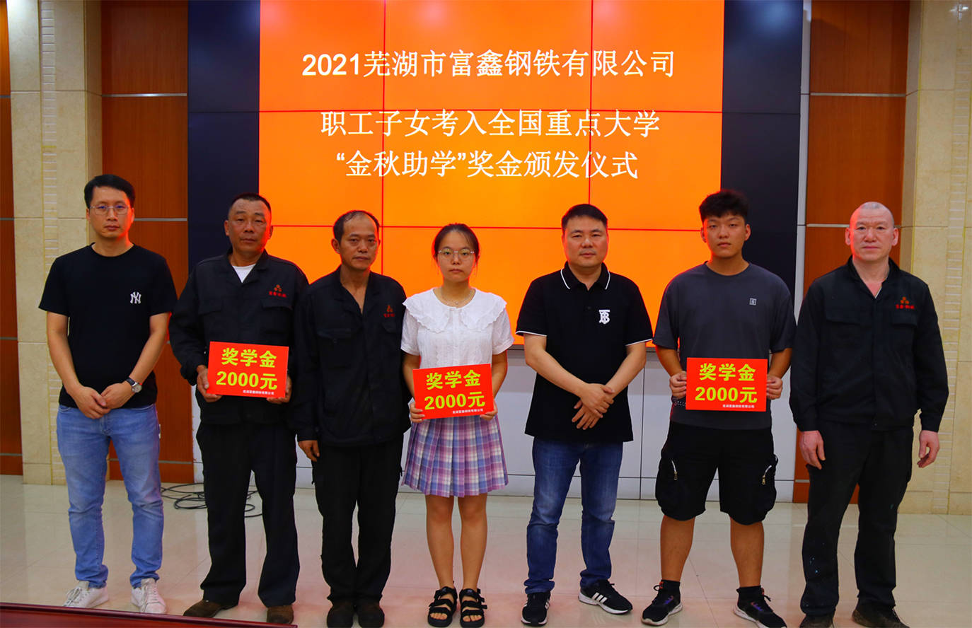 8月11日下午,在蕪湖市富鑫鋼鐵有限公司舉行的2021“金秋助學(xué)”獎金發(fā)放儀式上,向今年考取電子科技大學(xué)、東南大學(xué)、...